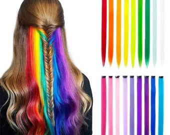 Amazon Com Swacc 22 Pcs Colored Party Highlights Clip On In Hair Extensions Multi Colors Hair Streak Synthetic Hairpieces 11 Colors 22 Pcs In Set Curly Wavy Beauty Personal Care
